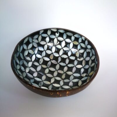 COCONUT BOWL WITH DECORATION DIAMETER:14CM HEIGHT: 6cm MATERIAL: COCONUT ORIGIN: THAILAND HANDMADE